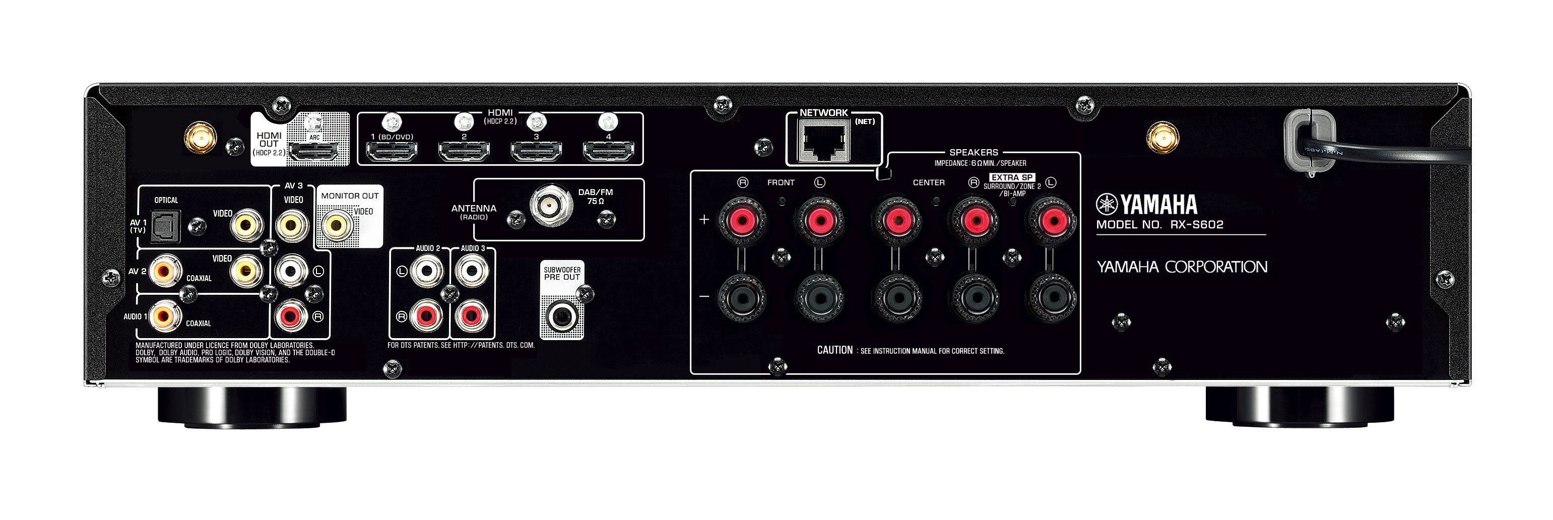 Yamaha MusicCast RX-S602 to kompaktowy amplituner kina domowego. Wykorzystuje opracowany przez Yamahę układ Cinema DSP 3D i umożliwia stworzenie 5-kanałowego zestawu kina domowego, dostarczając moc 95 W na kanał (6 Ω, 1 kHz, 0,9% THD, 1 kanał). Cinema DSP 3D gwarantuje szerokie, wysokie i gęste pole dźwięku, a wrażenia brzmieniowe zapewnia obsługa nowoczesnych formatów przestrzennych, takich jak Dolby TrueHD, Dolby Digital Plus i DTS-HD Master Audio.
