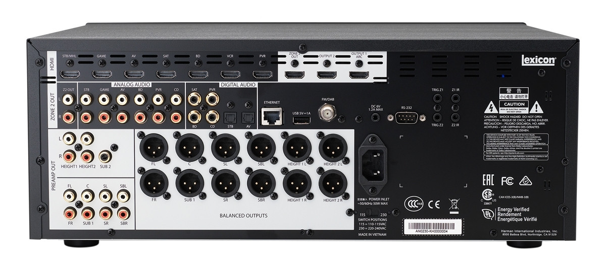 Procesor Lexicon MC-10 został wyposażony również w HDMI 2.0a z HDCP 2.2 4K "Ultra HD" i 3D oraz kompatybilność z Dolby Vision. Jego obudowa skrywa audiofilski przetwornik DAC Cirrus CS42528 24 Bit/ 192 kHz, korektor akustyki pomieszczenia Dirac Live®.