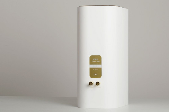 Producent wyraźnie nawiązuje tutaj stylistyką do włoskiego wzornictwa przemysłowego z przełomu lat 60. i 70., wyposażając kolumny Chario Belong w zaokrąglone obudowy o gładkiej, białej powierzchni. Korpus ukształtowany z tworzywa o nazwie Corian, zwanego także "sztucznym kamieniem", uzupełniono od góry i dołu eleganckimi panelami z litego drewna. To pierwsze tworzywo składa się w 2/3 z poliakrylanu i wodorotlenku aluminium oraz w 1/3 ze szkła akrylowego i charakteryzuje się bardzo dużą sztywnością, sprężystością, homogeniczną strukturą wewnętrzną, odpornością na ścieranie oraz brakiem wrażliwości na oddziaływanie światła słonecznego i środki czyszczące, będąc jednocześnie tworzywem bardzo lekkim.