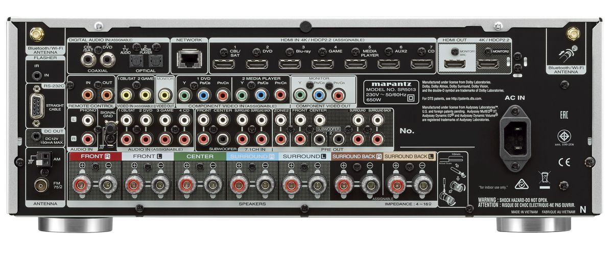 Marantz SR6013 oferuje dziewięć kanałów wzmocnienia po 185 W każdy oraz dwa wyjścia dla subwooferów, aby jak najlepiej wykorzystać dekodowanie ścieżek dźwiękowych Dolby Atmos i DTS:X / DTS Virtual:X, które mogą być odtwarzane w konfiguracji do 11.2 kanałów.
