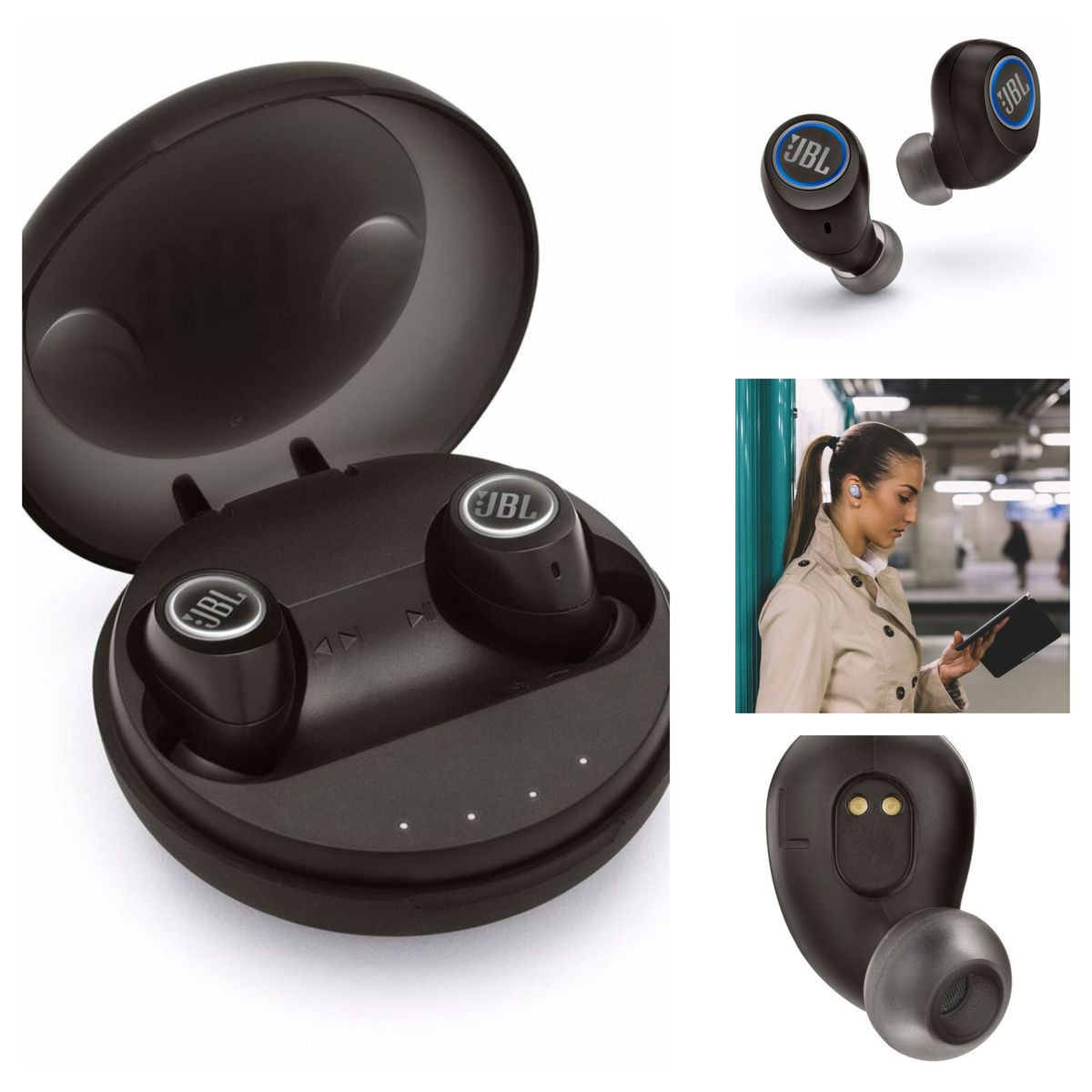 JBL zaprezentował także bardzo ciekawe rozwiązanie w dziedzinie słuchawek - JBL Free. To w pełni bezprzewodowe słuchawki zakładane pojedynczo do uszu odporne na zachlapania (IPX5). W sumie zapewniają do 24 godzin pracy (po wyczerpaniu akumulatora po 4 godzinach w zapasie jest jeszcze 20 godzin pracy po doładowaniu z etui ładującego). Dzięki wbudowanemu mikrofonowi umożliwiają prowadzenie rozmów telefonicznych bez użycia rąk. W zestawie znajdują się nakładki w trzech rozmiarach (S/ M/ L) oraz etui ładujące.
