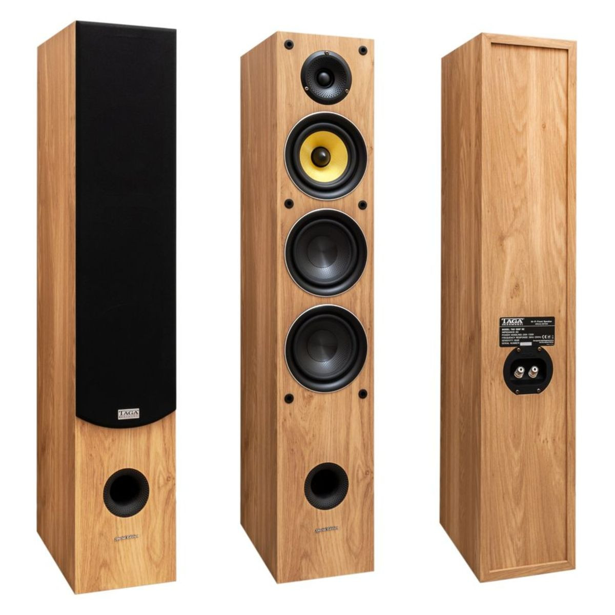 • TLIE (Taga Low Interference Enclosure) zbudowana z dużej gęstości 12 mm ścianek z MDFu, które są 3.5 cm głębsze niż w zwykłej serii TAF-506F. Wszystko po to, by nadać większą objętość wewnętrzną oraz zwiększyć sztywność obudowy. Rezultat to obniżone rezonanse i wibracje oraz eliminacja problemu fal stojących. Całości dopełniają szpilki, które zapewnią doskonałą izolację kolumny od podłoża.