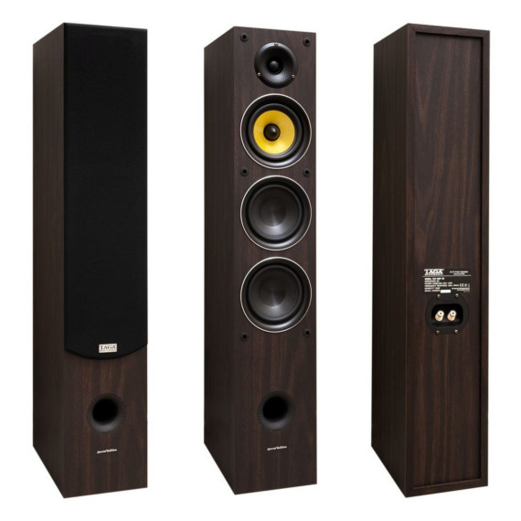 - Konstrukcja: kolumna podłogowa 3-drożna; obudowa 12 mm MDF TLIE; punkty odcięcia zwrotnicy 380Hz, 2.8 kHz