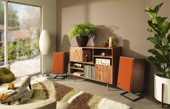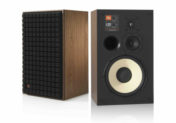 Swoim wyglądem JBL L100 Classic nawiązują do przeszłości - nie tylko styl retro, lecz także kratowana maskownica (w kolorach czarnym i pomarańczowym) z pianki Quadrex czytelnie nawiązują do niezwodnego głośnika sprzed lat. Obudowa kolumn jest z z drewna orzechowego.