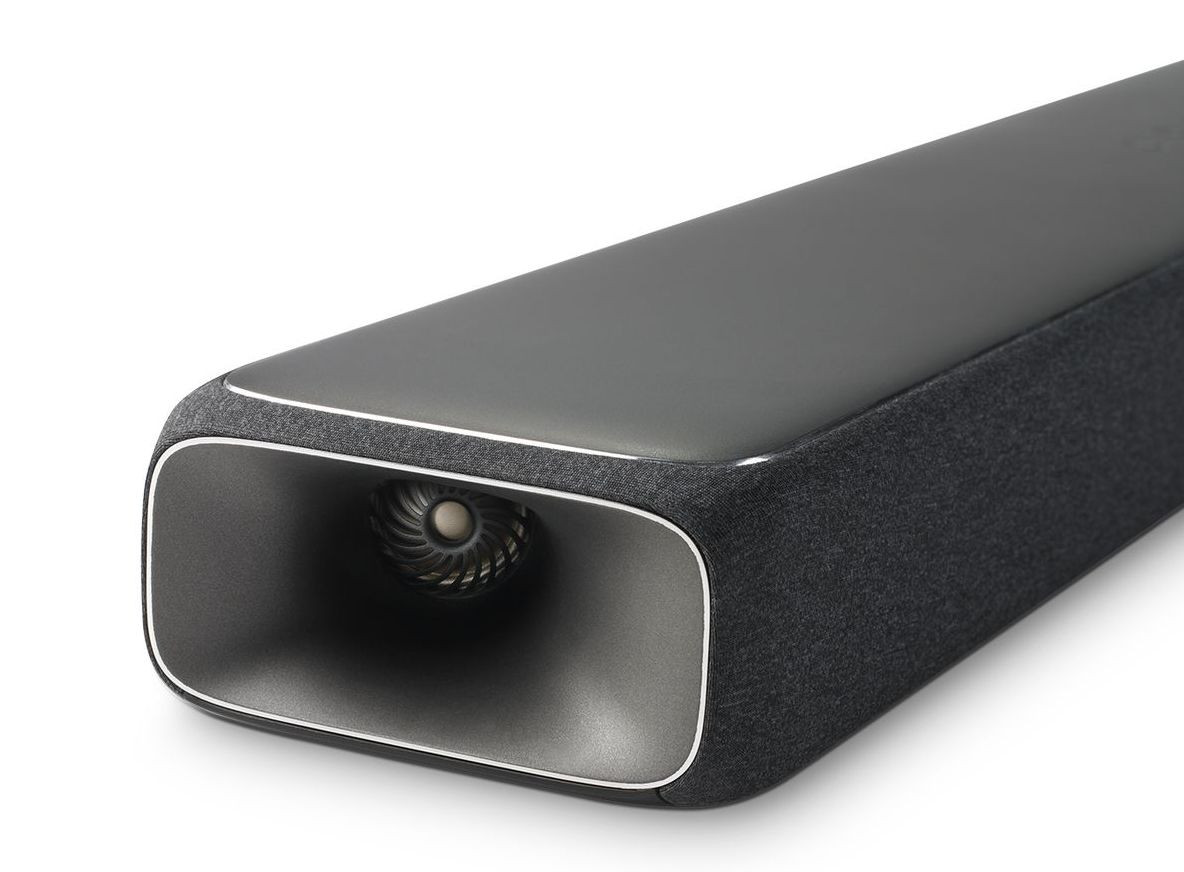 Harman Kardon Enchant 800 ma wejście i wyjście HDMI z HDCP 2.2 z ARC i CEC, 4K, HDR10, wejście analogowe i optyczne, Bluetooth 4.2 oraz Wi-Fi. Można go obsługiwać pilotem z TV. Jest dostępny w kolorze czarnym.