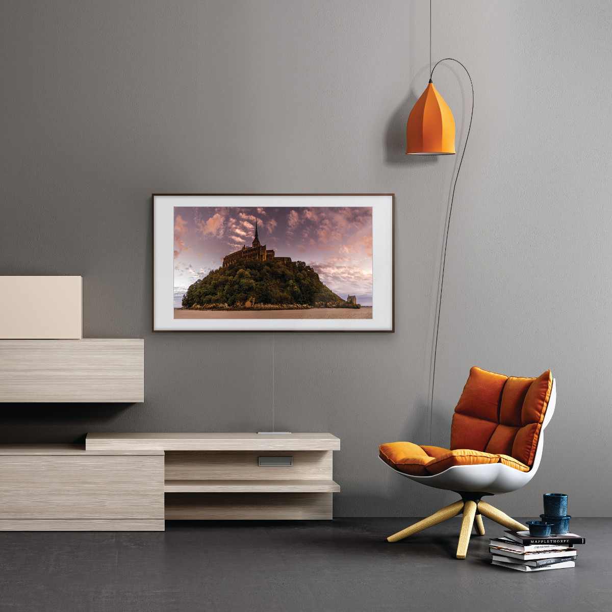 Samsung The Frame zmienił rolę i sposób wykorzystania telewizora we wnętrzu. Za sprawą trybu Sztuka (Art Mode), kiedy nie jest używany do oglądania filmów, staje się nowoczesnym nośnikiem sztuki, wprowadzając tym samym największe dzieła malarstwa do prywatnej domowej galerii. Dzięki zastosowaniu czujnika światła The Frame dostosowuje kolory i jasność ekranu do warunków oświetleniowych w pomieszczeniu, co zapewnia optymalne ustawienia wyświetlania.