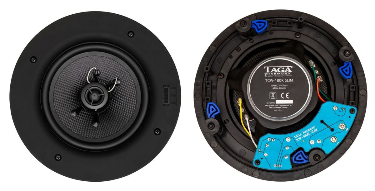Taga Harmony TCW-480R SLIM dzięki bardzo płaskiej obudowie może być instalowany w płytkich przestrzeniach (tylko o głębokości 6.5 cm). Niski profil ramki magnetycznie montowanej maskownicy sprawia, że głośnik jest praktycznie niewidoczny po instalacji