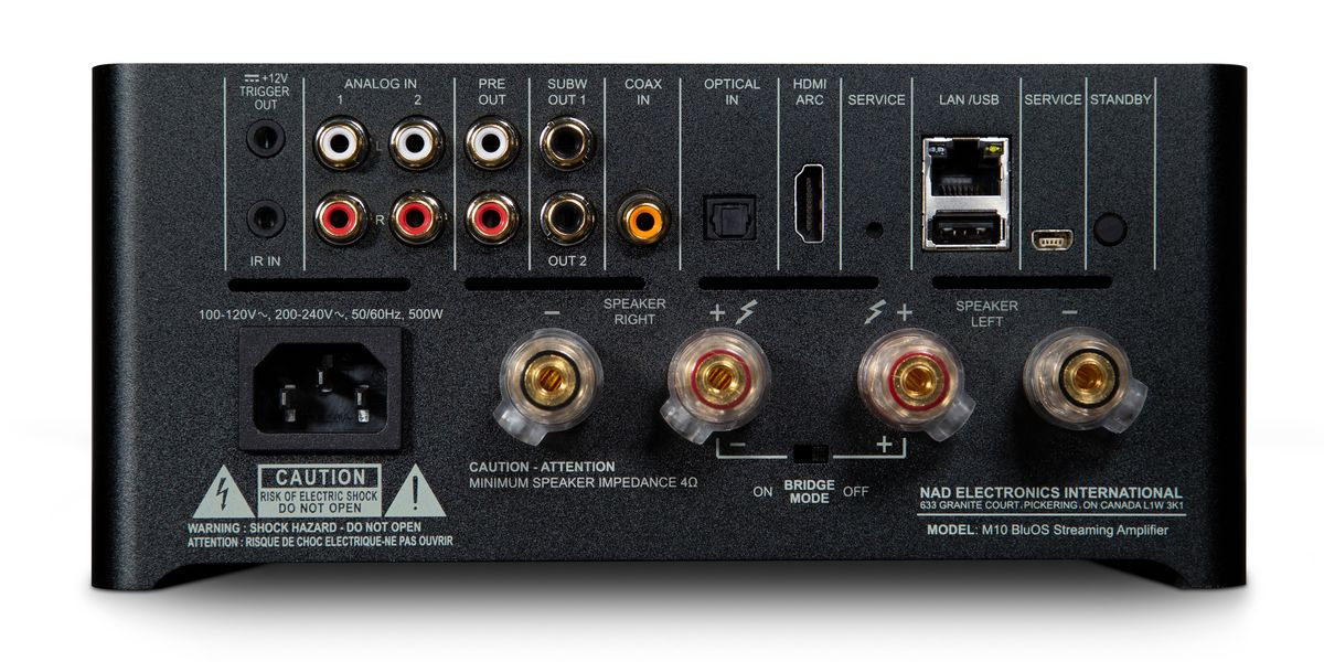 NAD oferuje m.in. Dirac Live Room Correction - funkcja ta zostanie wprowadzona za pomocą aktualizacji oprogramowania - i jest wyposażony w gniazdo HDMI z ARC (kanał zwrotny audio), co ułatwia integrację z nowoczesnymi telewizorami. Ponadto, dzięki dołączeniu BluOS™, wydajnego bezprzewodowego systemu multiroom Bluesound™, jest kompatybilny z nowym standardem strumieniowania w jakości high-res, MQA (Master Quality Authenticated). BluOS wspiera również ponad 15 darmowych i płatnych serwisów subskrypcyjnych, a także lokalne biblioteki muzyczne.