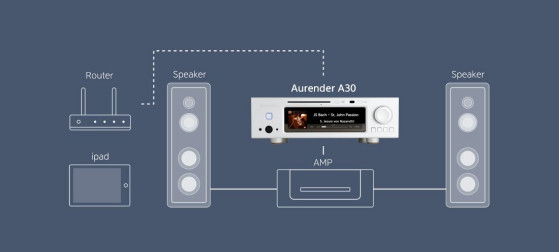 Aurender zaprojektował A30 jako wszechstronny, cyfrowy punkt centralny systemu muzycznego. Urządzenie oferuje funkcje takie jak zgrywanie płyt CD, wysokiej jakości wzmacniacz słuchawkowy, 10 TB wewnętrznej pamięci masowej, bardzo szeroki kolorowy wyświetlacz LCD oraz zintegrowany pakiet oprogramowania do edycji metadanych i narzędzi do zarządzania biblioteką.