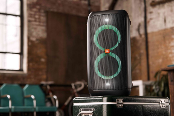 JBL Partybox 100 to przenośny głośnik imprezowy z obsługą technologii Bluetooth i dynamicznymi efektami świetlnymi. Odtwarza muzykę zarówno z playlisty z urządzenia przenośnego, jak i listy odtwarzania z pamięci USB. Można go ustawić na ziemi i na uniwersalnym statywie*. A grać będzie nawet całą noc za sprawą wbudowanego akumulatora zapewniającego do 12 godzin pracy.