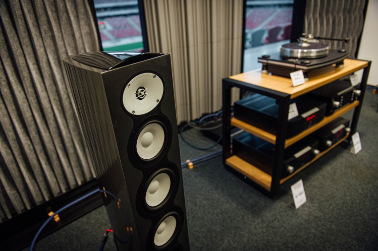 Na koniec stali bywalcy Audio Video Show, którzy zawsze wystawiają się w hotelu Golden Tulip - Ayon (tym razem wystąpiły głośniki Lumen White Light Anniversary Diamond, monobloki Vulcan Evolution oraz przedwzmacniacz Conquistador), Boenicke (z aktywnymi kolmnami W13SE+) oraz Gauder Akustik, który po raz pierwszy na świecie pokazał swoje głośniki Dark 140.