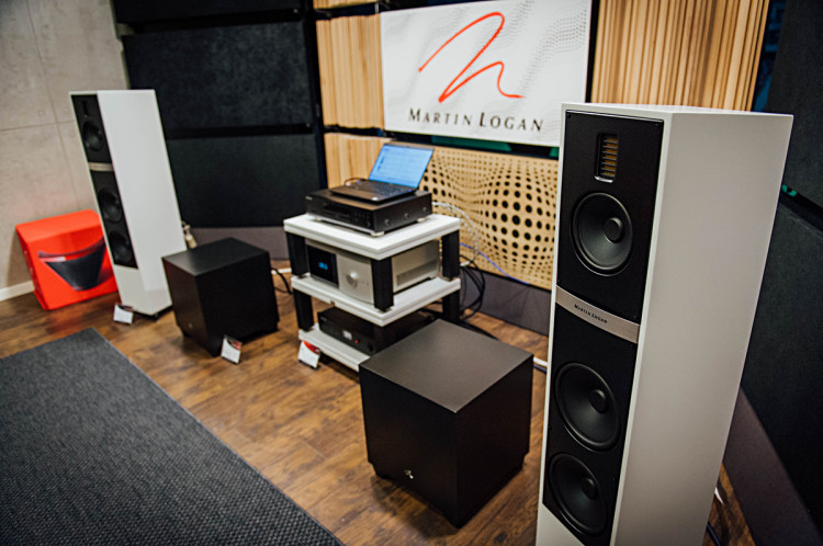 Dalej kolumny Revel 226Be z elektroniką Mark Levinson: No5101, 519, 5802, 5805, gramofon No515, a także system, w którym gwiazdą były kolumny Martin Logan Motion 60XTi (towarzyszyły mu subwoofery Dynamo 1100X, wzmacniacz zintegrowany Anthem STR, Taga Harmony PF-2000, Pioneer UDP-LX500).