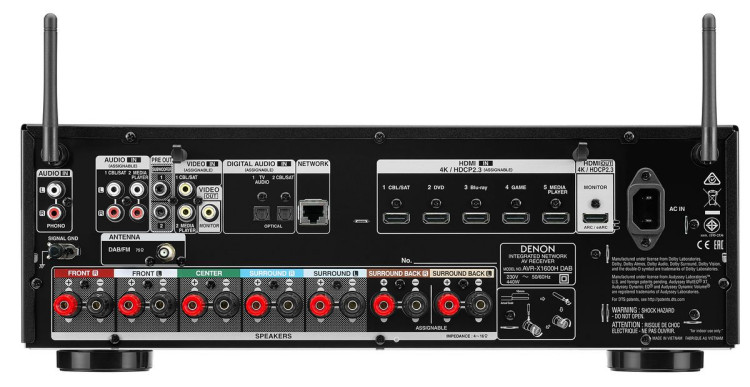 Denon AVR-X1600H DAB został wyposażony w wysokoprądowe wzmacniacze mocy na wszystkich kanałach, zapewniające wysoką moc 80 W na kanał (8 ohm, 20 Hz - 20 kHz, 0,08% THD). Przetworniki o niskiej impedancji zapewniają stabilność obsługi wielu głośników.