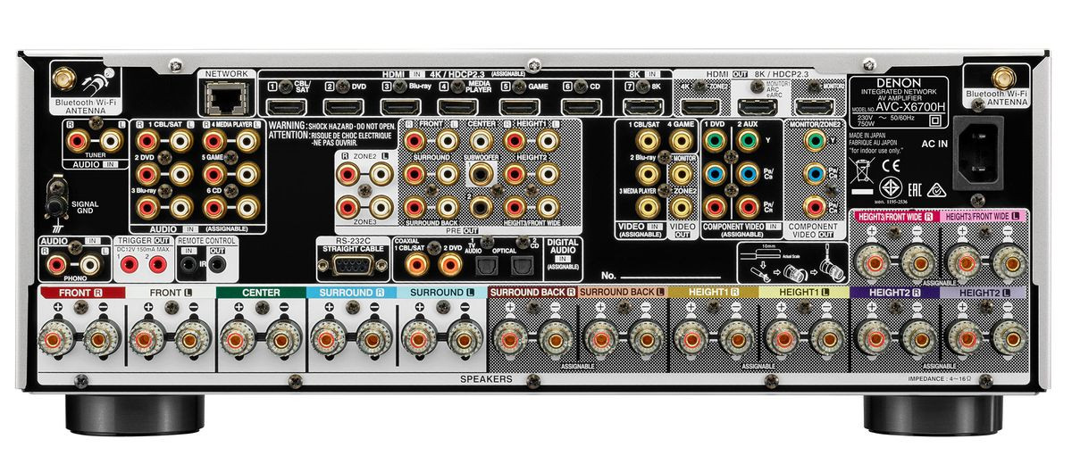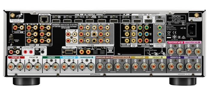 Denon AVC-X6700H obsługuje 11 kanałów wzmocnienia z przetwarzaniem 13.2-kanałowym, natomiast modele AVCX4700H i AVC-X3700H do 9 kanałów wzmocnienia i przetwarzanie 11.2 kanałów. Denon AVR-X2700H obsługuje do 7 kanałów wzmocnienia.