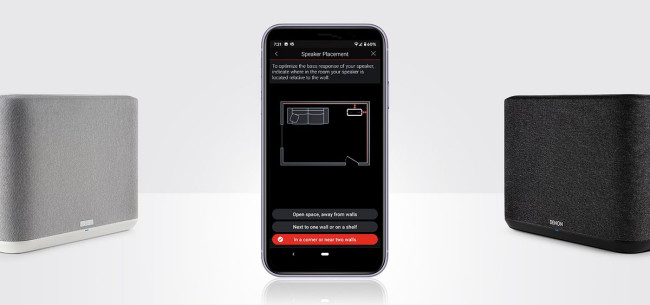 Głośniki Denon Home, jak na swoje rozmiary, odtwarza głęboki bas. Gdy zostanie umieszczony blisko ściany lub w narożniku pokoju, bas może być nawet nieco przytłaczający. Efekt ten nie może zostać skompensowany w aplikacji HEOS służącej do sterowania głośnikiem, dlatego Denon doposażył go w korektor umiejscowienia Placement EQ.