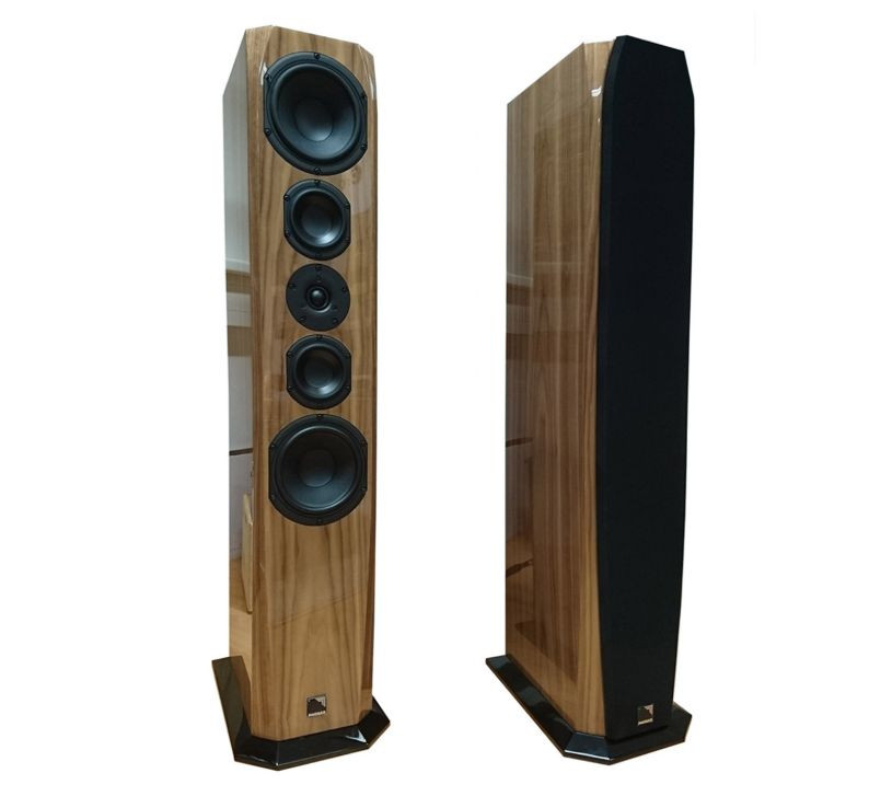 Kolumny są dostępne w kolorze czarnym, białym lub w naturalnym fornirze orzechowym – wszystkie wersje na wysoki połysk, pokryte siedmioma warstwami lakieru fortepianowego.