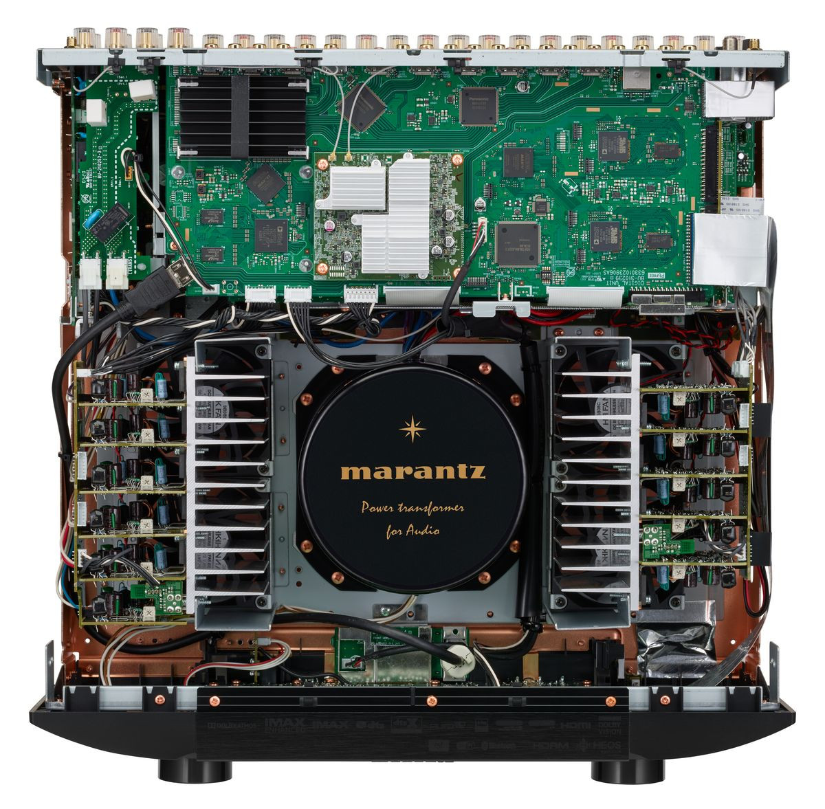 Flagowy model Marantz SR8015 oferuje 11 kanałów wzmacniacza o mocy 205 W każdy, możliwość przetwarzania 13.2 kanałowego, obsługę DTS:X Pro i wiele innych audiofilskich rozwiązań, takich jak autorska konstrukcja wzmacniacza, transformator toroidalny lub miedziana obudowa.