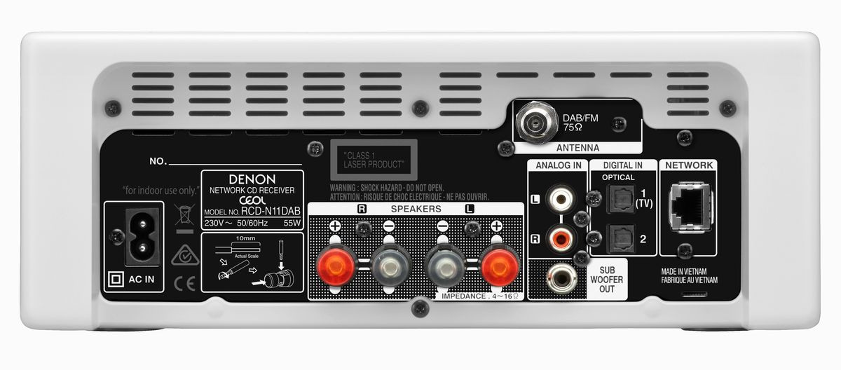Denon CEOL N11 DAB skrywa cyfrowy wzmacniacz klasy D, który wykorzystuje wbudowany cyfrowy korektor EQ, dostrojony w celu zoptymalizowania dźwięku z dwudrożnego zestawu głośnikowego Denon SC-N10. Każdy głośnik zawiera wysokiej klasy 12-centymetrowy przetwornik średnio-niskotonowy oraz 3-centymetrowy tweeter o wysokiej rozdzielczości dostarczające - jak mówi producent - "klarowny, wyważony dźwięk, zapewniając także doskonały balans tonalny".