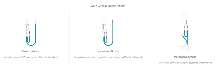 1. Bazowej, do innego gniazda RCA. Za pomocą kabla Grun zakończonego z jednej strony wtykiem RCA, zaś z drugiej strony złączami Grun. Dołączony w standardzie przez producenta.