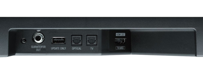 Obudowa soundbara skrywa też dwa subwoofery (75 mm) współpracujące z dwoma portami bas-refleks, parę przetworników niskotonowych (55 mm) oraz dwa głośniki wysokotonowe (25 mm).
