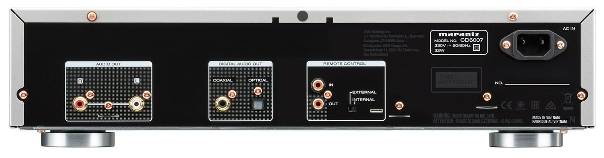 Sygnał analogowy w CD6007 jest kierowany przez opatentowany przez Marantza moduł wzmacniacza HDAM-SA2 prosto do pozłacanych wyjść na tylnym panelu. Sztywne nóżki i dwuwarstwowa podstawa eliminują niepożądane wibracje mogące zakłócić działanie mechanizmu wewnątrz odtwarzacza.