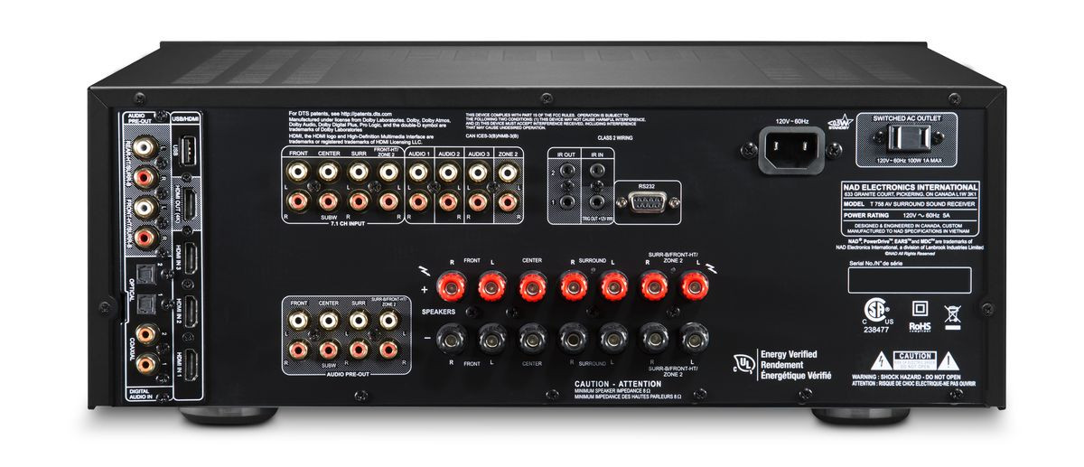 NAD T 758 V3i obsługuje popularne złącze HDMI, kanał zwrotny audio ARC (Audio Return Channel) i funkcję CEC (Consumer Electronic Control).