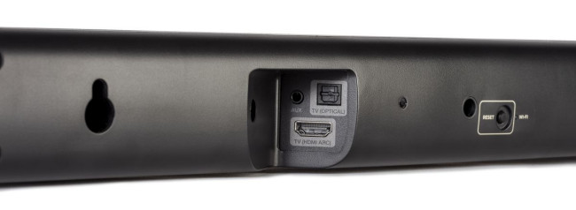 Soundbar ma zaledwie 5.6 cm wysokości i bezproblemowo mieści się pod większością nowoczesnych telewizorów. W swojej obudowie skrywa parę pełnozakresowych przetworników 1,25x4,4 cala i dwa jednocalowe głośniki wysokotonowe rozmieszczone wzdłuż smukłej ramy.