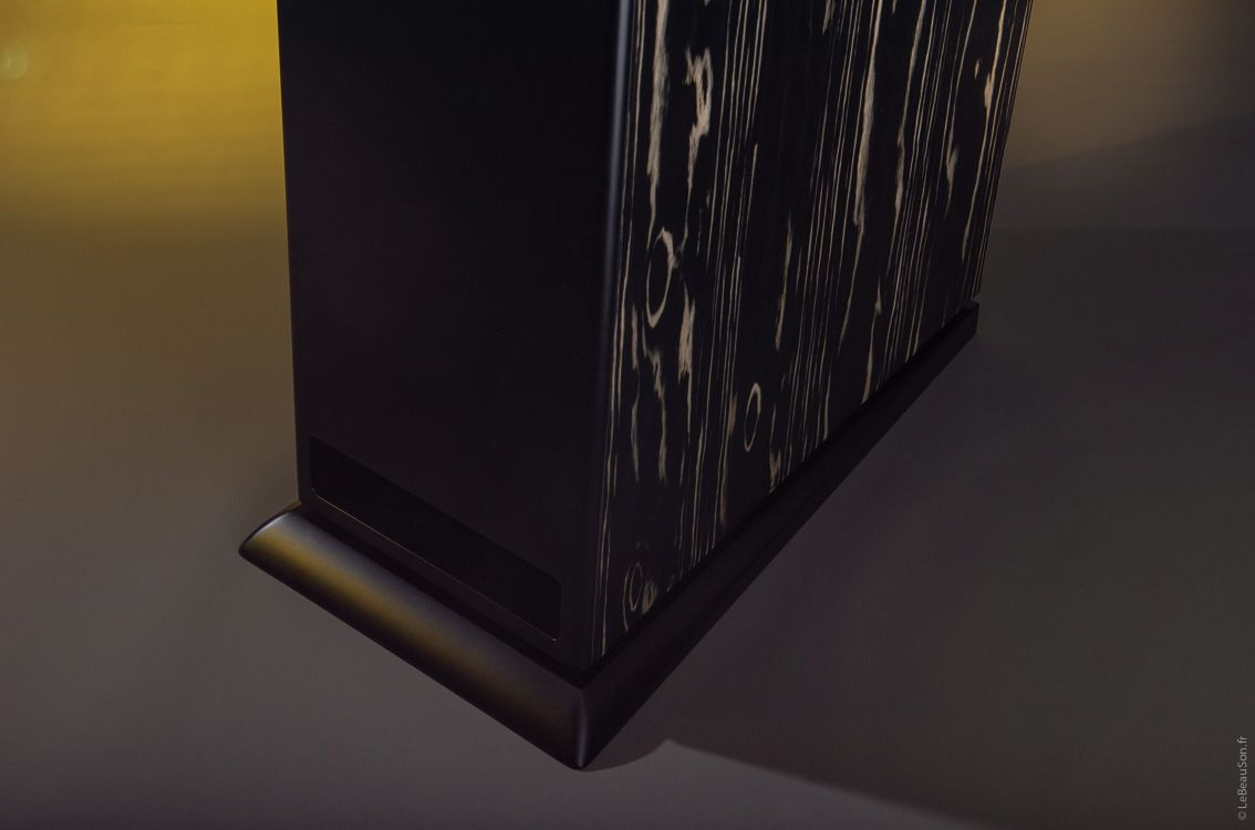 W porównaniu z pierwszą wersją Davis Acoustics MV One obudowa jest teraz trapezoidalna (widok z góry), aby uniknąć równoległych ścian. Kolumna jest również odchylona do tyłu (7°). Te dwie modyfikacje zmniejszają powstawanie fal stojących wewnątrz obudowy, a tym samym zapewniają przejrzystość odsłuchu.