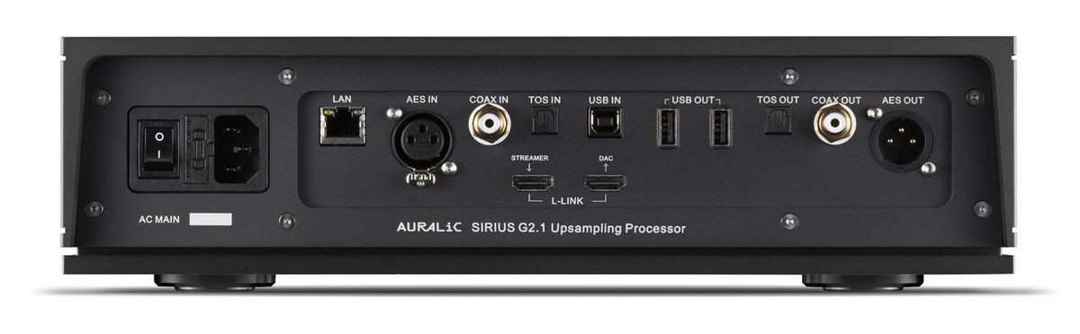 Sirius G2.1 został zaopatrzony w bogatą liczbę wejść i wyjść, umożliwiając podłączenie do różnych źródeł cyfrowych i przetworników cyfrowo-analogowych. Zasila go platforma współprzetwarzania AURALiC Proteus G2; której sercem jest układ FPGA Xilinx XC7A200T, wzmocniony przez 512 MB pamięci DDR3. Ten układ FPGA zawiera ponad 200 000 komórek logicznych i 740 segmentów DSP.