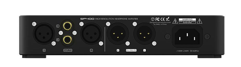SMSL SP400 dysponuje kompletem złączy w postaci wejść analogowych single ended RCA, zbalansowanych XLR. Wyjścia realizowane są za pomocą złączy słuchawkowych Jack 6,3mm oraz zbalansowanego 4 pin XLR oraz podwójnego wyjścia Preamp 3 pin XLR.