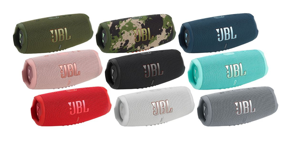 JBL Charge 5 to przenośny wodoodporny głośnik z powerbankiem, ma oferować brzmienie JBL Original Pro Sound dzięki zoptymalizowanemu przetwornikowi o dużym skoku, oddzielnemu głośnikowi wysokotonowemu i dwóm radiatorom basowym JBL.