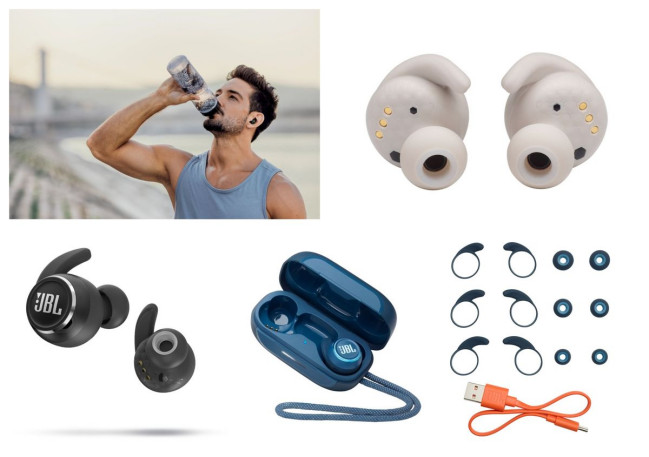 JBL Reflect Mini NC TWS cechują się wodoodpornością klasy IPX7, zatem pozwalają na trening np. w deszczu.
