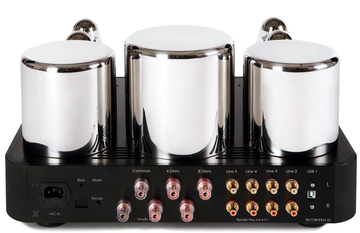 Ayon Scorpio II łączy wiele rozwiązań, umożliwiając zastosowanie w stopniu mocy zarówno wspomnianych EL34, jak i KT88 lub KT150. Ponownie dostajemy do dyspozycji klasyczny dla Ayona układ w czystej klasie A z zerowym sprzężeniem zwrotnym i auto-manualną regulacją BIASu, wyposażony także w nowoczesny system miękkiego startu i układy zabezpieczające lampy przed przeciążaniem, a więc wydatnie wydłużające ich żywotność.