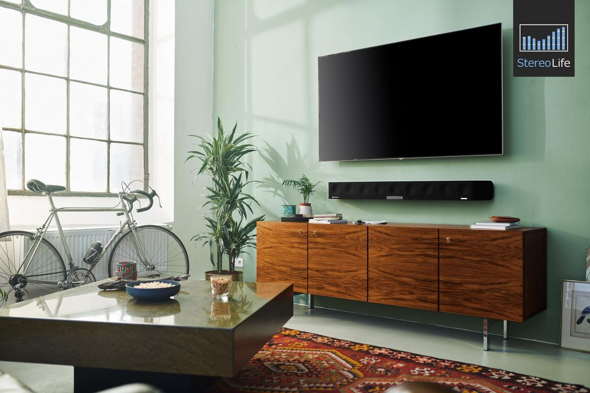 Sennheiser AMBEO zapewnia dźwięk 5.1.4 z mocnym basem bez potrzeby stosowania dodatkowych głośników lub zewnętrznego subwoofera. Oprócz 360 Reality Audio jest kompatybilny z Dolby Atmos, MPEG-H i DTS: X. Dzięki technologii Upmix AMBEO Soundbar może również odtwarzać dźwięk stereo i 5.1 z efektem 3D.