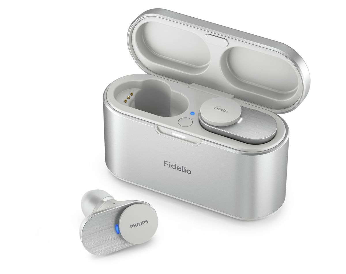 Czas pracy Philips Fidelio T1 na baterii wynosi 9 godzin ciągłego odtwarzania z włączoną funkcją ANC, kolejne 25 godzin działania zapewnia etui ładujące.