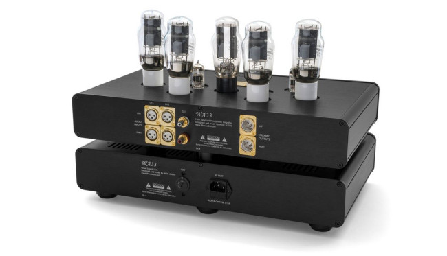 Woo Audio WA33 to wzmacniacz w pełni zbalansowany oparty na lampach 6S45 w stopniu sterującym oraz 2A3, jako lampach mocy – przy czym wszystkie to bezpośrednio żarzone triody.