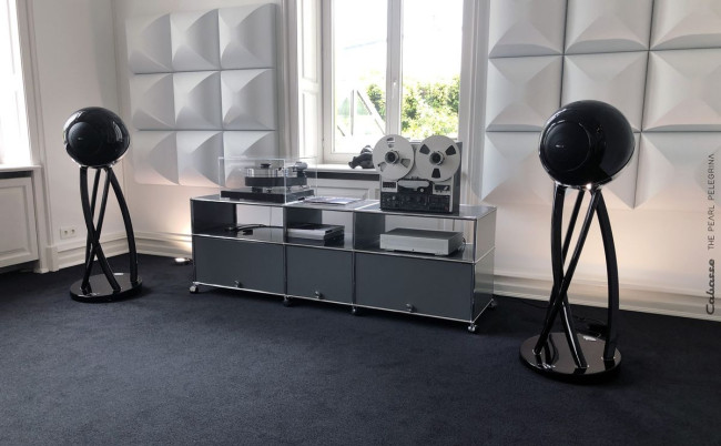 Koneserzy marki z pewnością rozpoznają podstawę Lissajous, nazwaną na cześć słynnego fizyka, który sprawił, że "dźwięk stał się widoczny", oraz logo Cabasse. Podobnie jak wszystkie głośniki z kolekcji The Pearl, tak i Pelegrina wyróżnia się specjalnie wyciętą, polerowaną na wysoki połysk metalową obręczą.