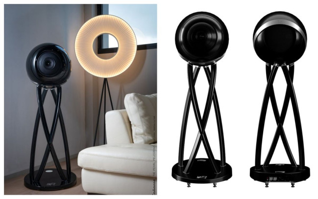 Przy wszystkich swoich osiągach kolumny są kompaktowe - ich wysokość to niecałe 130 cm, kula i podstawa mają średnicę 48 cm. Elektronikę ukryto w podstawie.