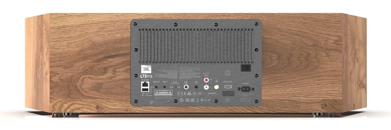 W obudowie JBL L75 MS znajduje się para 1-calowych kopułkowych przetworników wysokotonowych z aluminium z falowodami, para 5,25-calowych głośników niskotonowych z białymi stożkami i jeden 4-calowy przetwornik średniotonowy usytuowany centralnie. Każdy z pięciu przetworników ma dedykowany kanał wzmocnienia i strojenia.