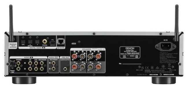 Denon PMA-900HNE jest kompatybilny z cyfrowymi plikami audio wysokiej rozdzielczości ALAC, FLAC i bezstratnymi plikami WAV o rozdzielczości do 24 bit/192kHz, a także ze ścieżkami DSD 2.8 MHz oraz 5.6 MHz (audiofilski format płyt SACD).