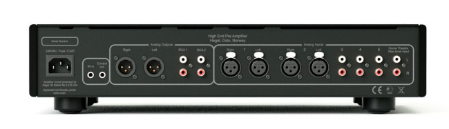 Wśród terminali wejściowych nie zabrakło, znanego z innych urządzeń Hegla, złącza 2 x RCA oznaczonego jako "Home Theatre". Umożliwia ono integrację przedwzmacniacza z rozmaitymi systemami kina domowego, ale w razie potrzeby może pracować również jako klasyczne wejście analogowe.