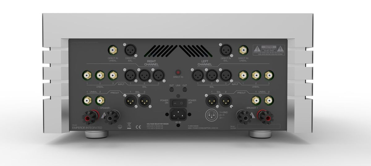 Konstrukcja wzmacniacza German Physiks The Emperor wykorzystuje wewnętrzną stalową obudowę z zewnętrzną obudową z anodowanego srebrnego aluminium o grubości 15 mm.