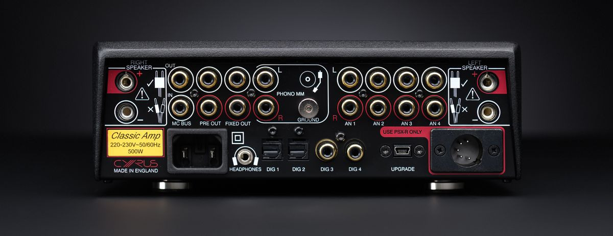 Cyrus Classic AMP zawiera port dla zasilacza PSX-R. Dodatkowe zasilanie z PSX-R kierowane jest do analogowych stopni przedwzmacniacza, co zapewnia im bardzo stabilne zasilanie niezależne od pracy stopni końcowych wzmacniacza.