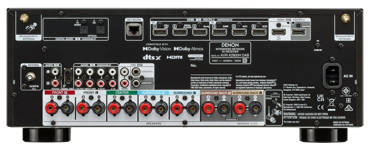 • Denon AVR-X2800H / Denon AVR-X2800H DAB: 7.2 kanałowy amplituner AV do średnich pomieszczeń, o mocy 95 watów na kanał. Denon AVR-X2800H. Wyróżnia się rozbudowaną łącznością HDMI 2.1 z trzema wejściami 8K, co przekłada się na obsługę wyższej rozdzielczości wideo i częstotliwości odświeżania. Model DAB został dodatkowo wyposażony w radio cyfrowe.