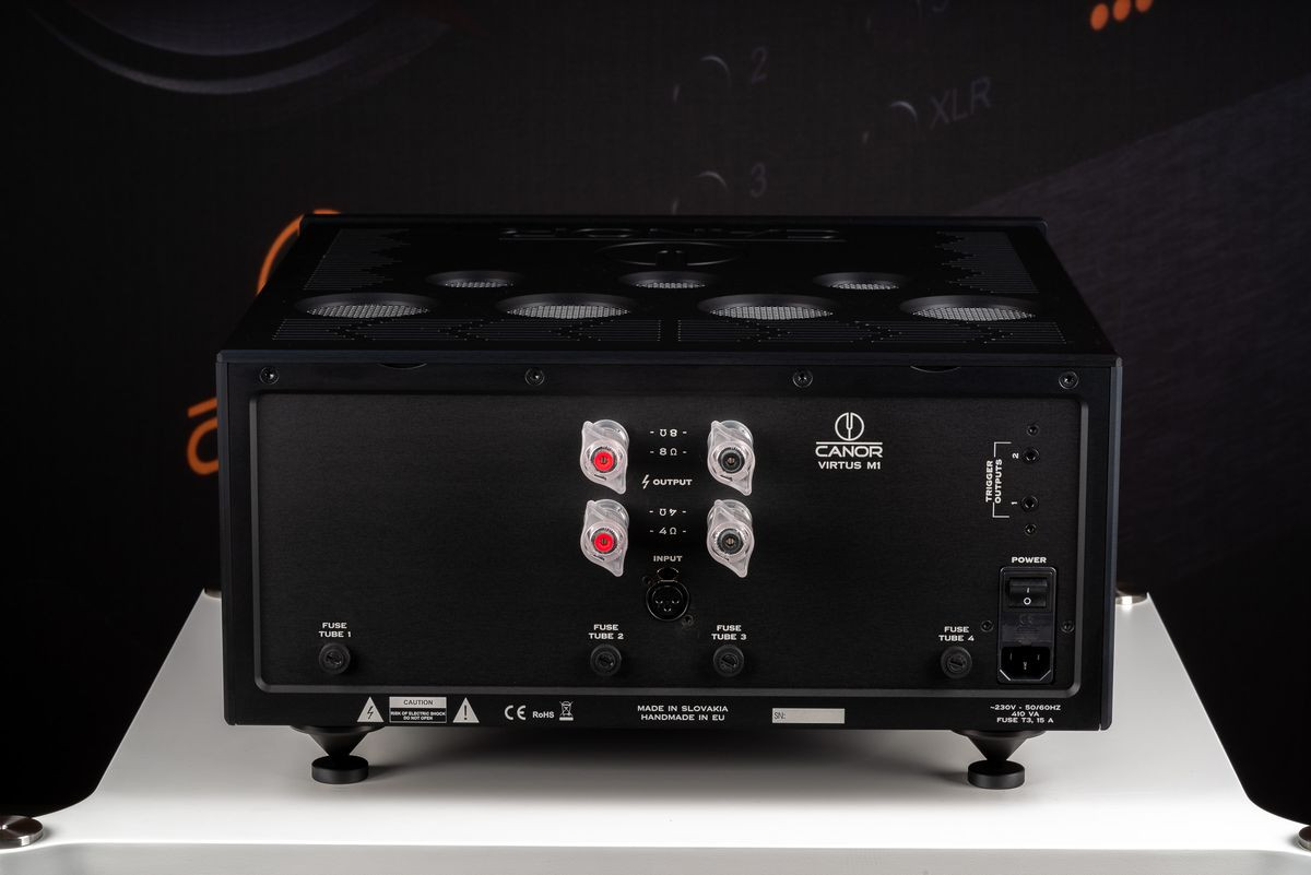 Canor Audio Virtus M1 to zupełnie nowa lampowa końcówka mocy mono w czystej klasie A, uważana za referencyjne źródło mocy. Umożliwia natychmiastowe przełączanie między sprzężeniem zwrotnym a zerowym sprzężeniem zwrotnym.