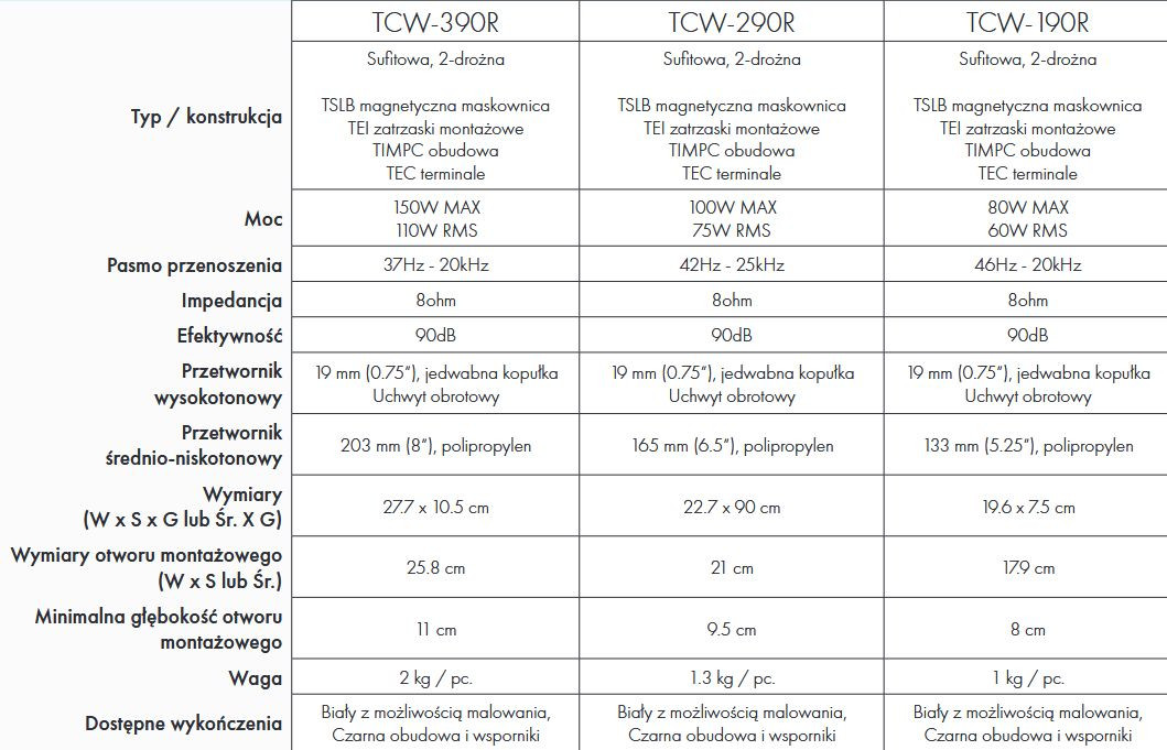Montaż jest wygodny i szybki, a bardzo niski profil ramki magnetycznie montowanej maskownicy sprawia, że głośnik jest praktycznie niewidoczny po instalacji.