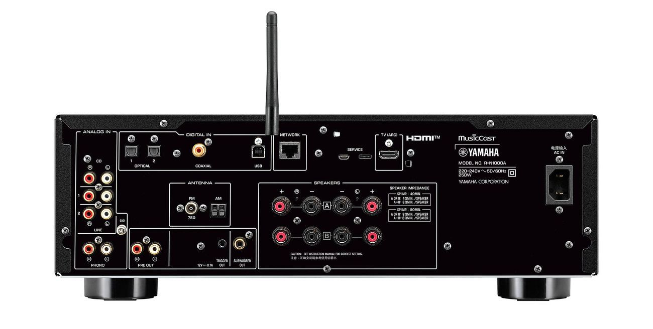 Podstawowe różnice między modelem Yamaha R-N1000A, jak i Yamaha R-N800A można zauważyć porównując m.in. dostępne złącza. Amplituner R-N1000A w odróżnieniu od swojego "mniejszego" odpowiednika został wyposażony dodatkowo w złącze HDMI ze zwrotnym kanałem audio (ARC). Pozwala to na wygodne podłączenie telewizora kablem HDMI i sterowanie podstawowymi parametrami odtwarzania za pomocą pilota do TV.