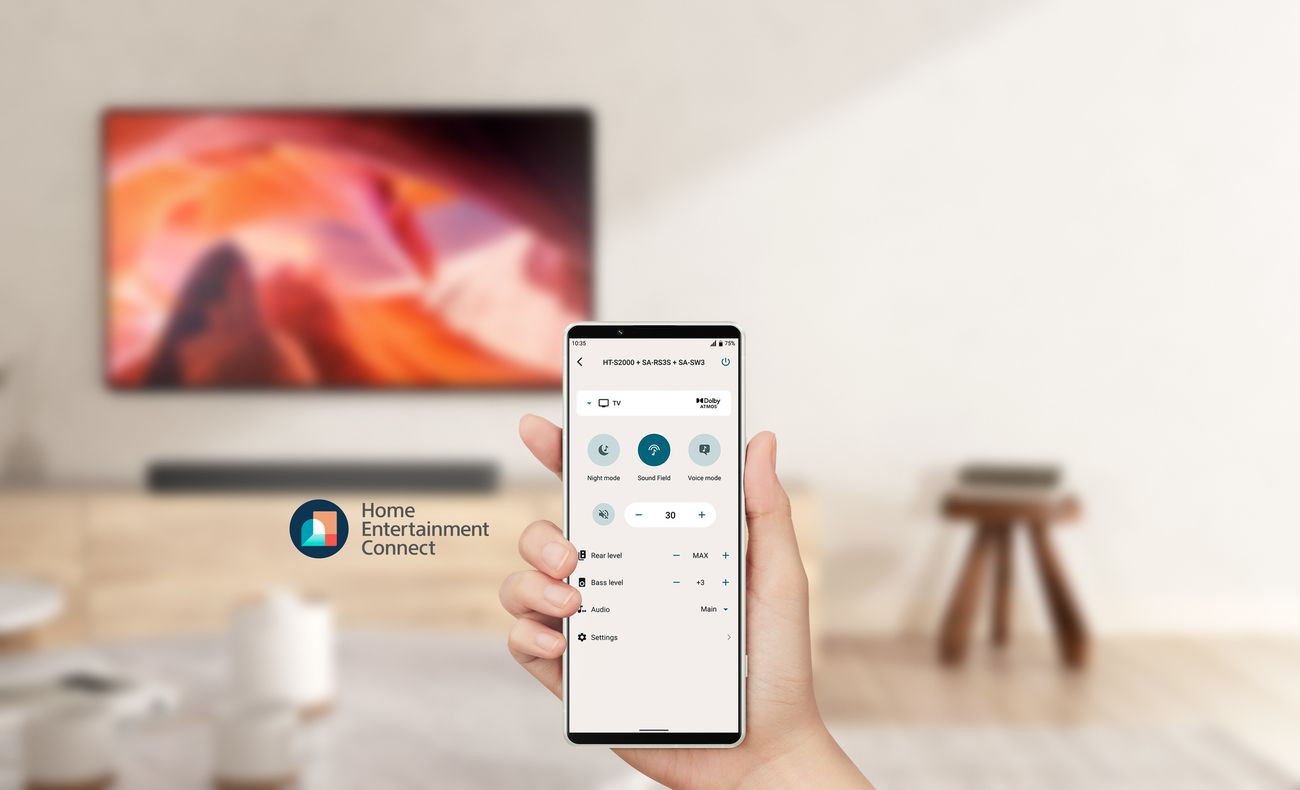Obsługa soundbara odbywa się za pomocą aplikacji mobilnej Sony | Home Entertainment Connect[1]. Prowadzi ona przez wstępną konfigurację, pomaga rozwiązać ewentualne problemy i zapewnia pełną kontrolę nad głośnością, polem dźwiękowym i innymi funkcjami. Jest też źródłem informacji o polecanych funkcjach i aktualizacjach oprogramowania.