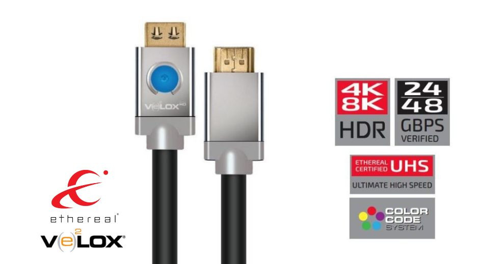 Pasywny kabel Ethereal Velox EHV-HDUP Passive HDMI 2.1 został przetestowany i zatwierdzony w restrykcyjnym procesie certyfikacji Ethereal Ultimate High Speed Performance 8K i jest dostępny w długościach od 1 do 8 metrów włącznie.