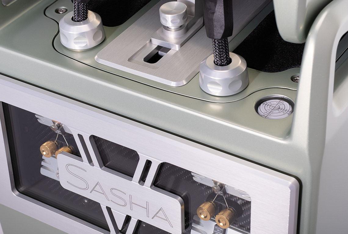 Lista zastosowanych innowacji w Sashy V jest długa. To między innymi: terminale głośnikowe stosowane do tej pory w topowych modelach Wilson Audi, 7-calowy przetwornik QuadraMag, przeprojektowany górny moduł pozwalający na ustawienie dwupozycyjne, wbudowana w obudowę poziomica oraz firmowe przewody zastosowane wewnątrz kolumny do połączeń zwrotnicy i przetworników.